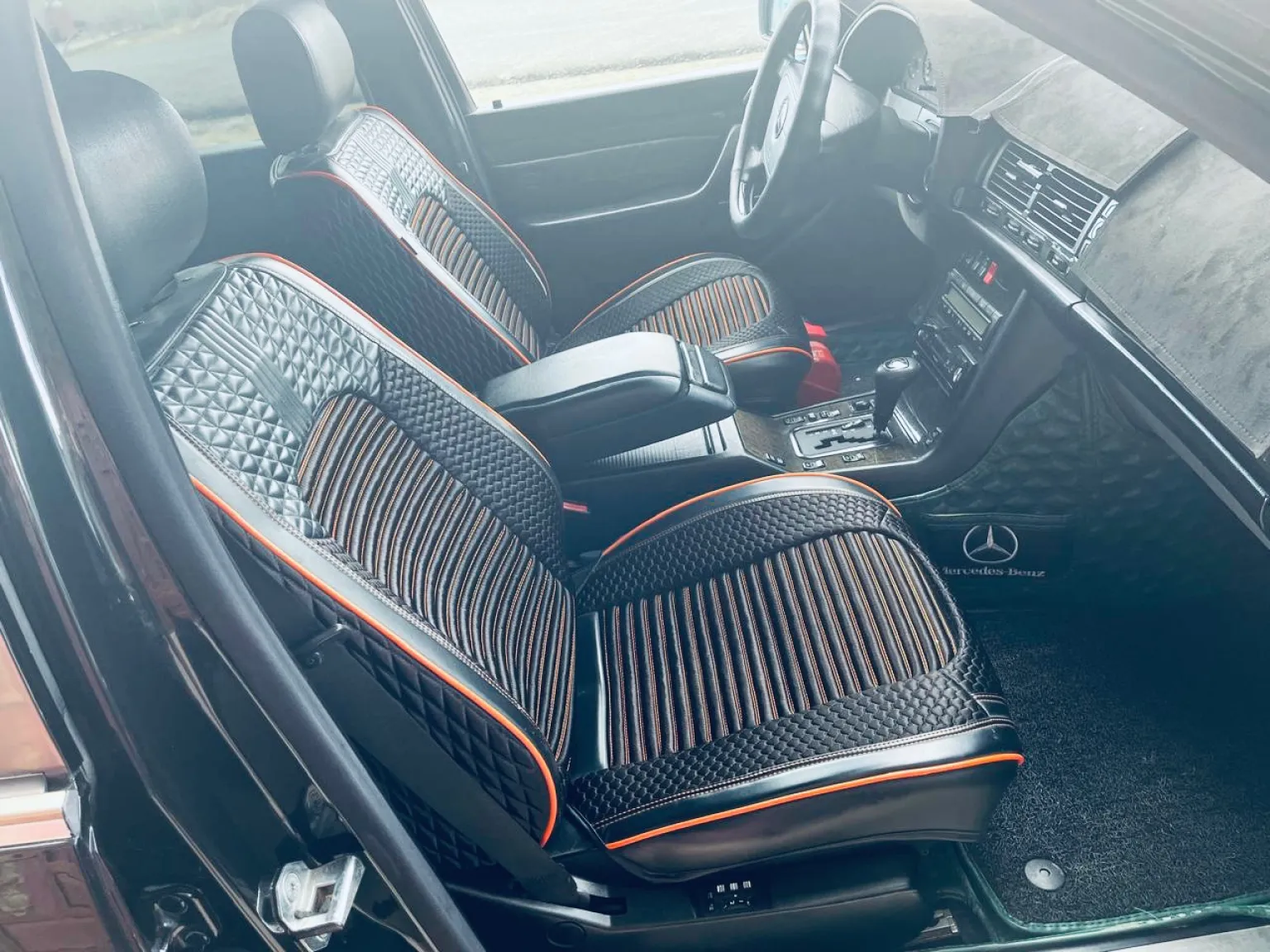 - Индивидуальные чехлы из кожеподобного материала с оранжево-красной окантовкой